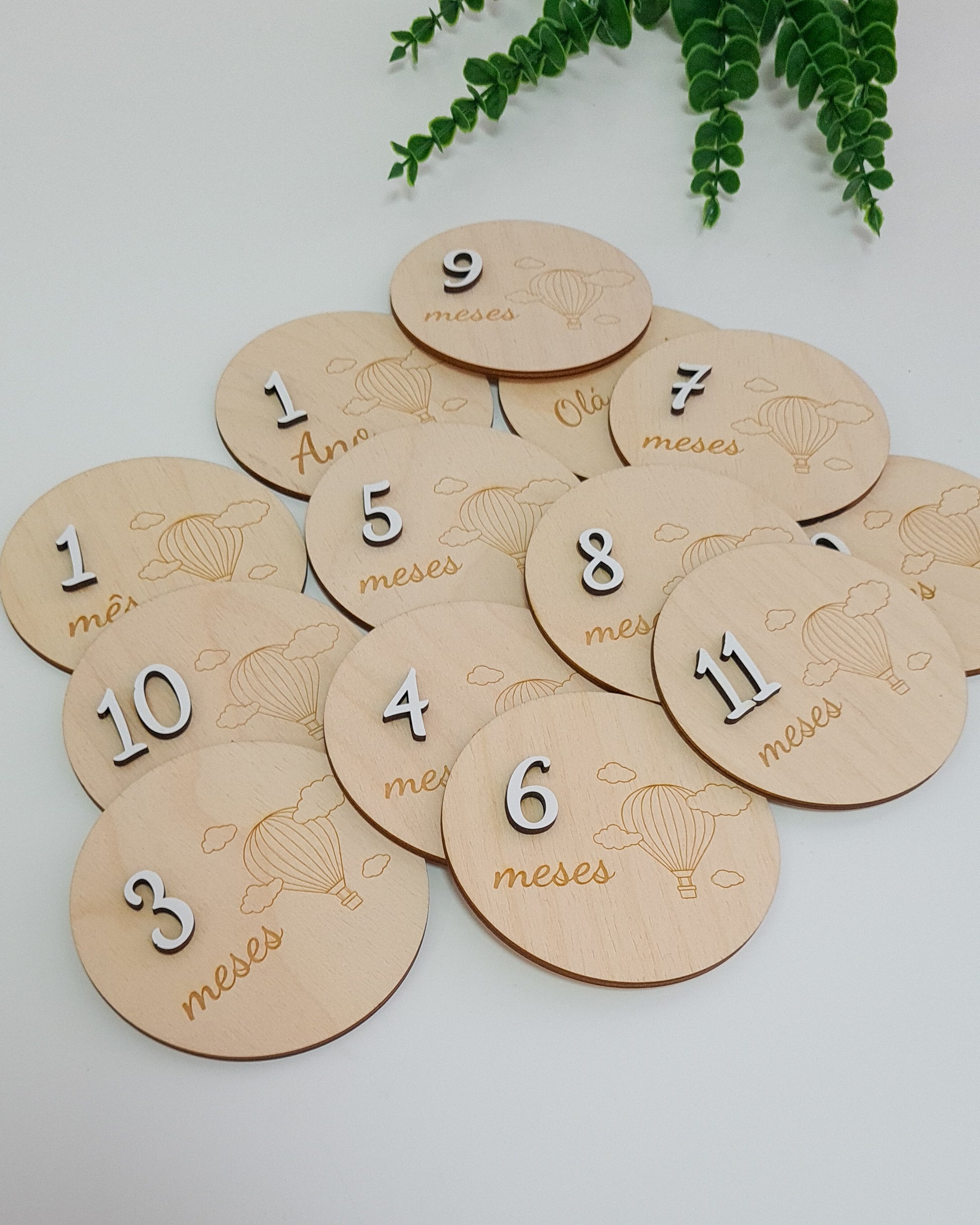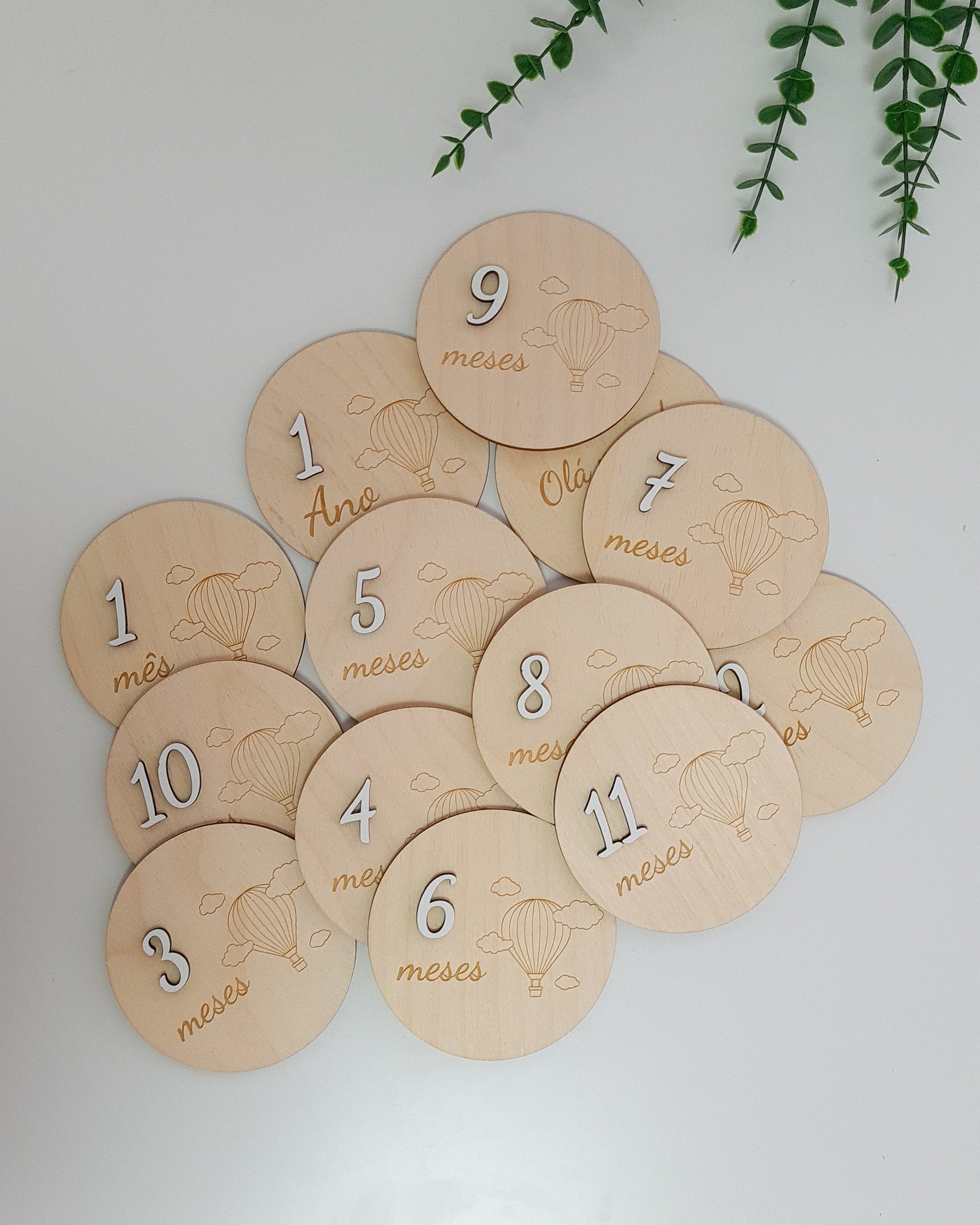 Inclui 12 placas mensais + placa "Olá mundo, cheguei!".