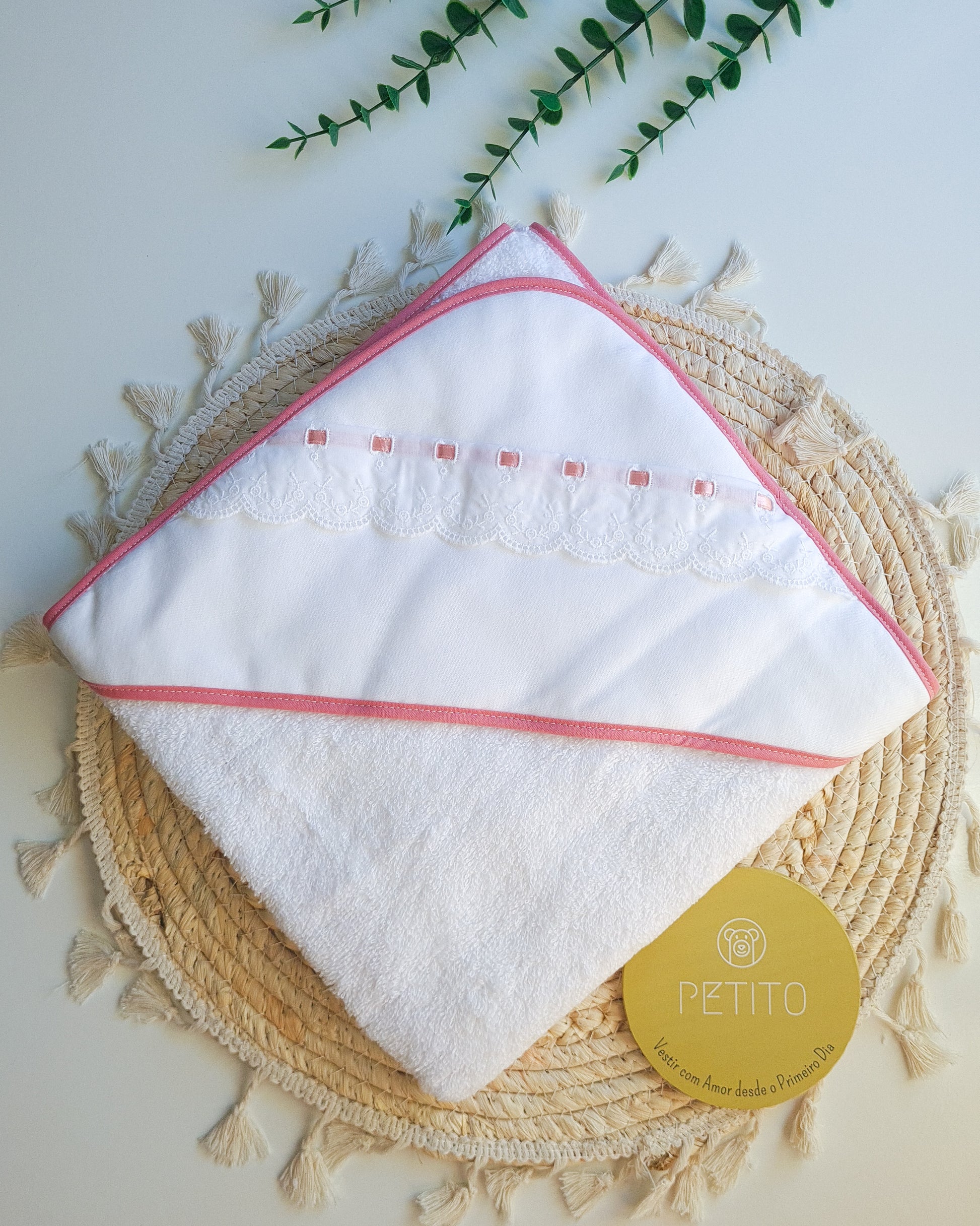 Toalha de banho com capuz, com bordado bordado e fita de cetim.
